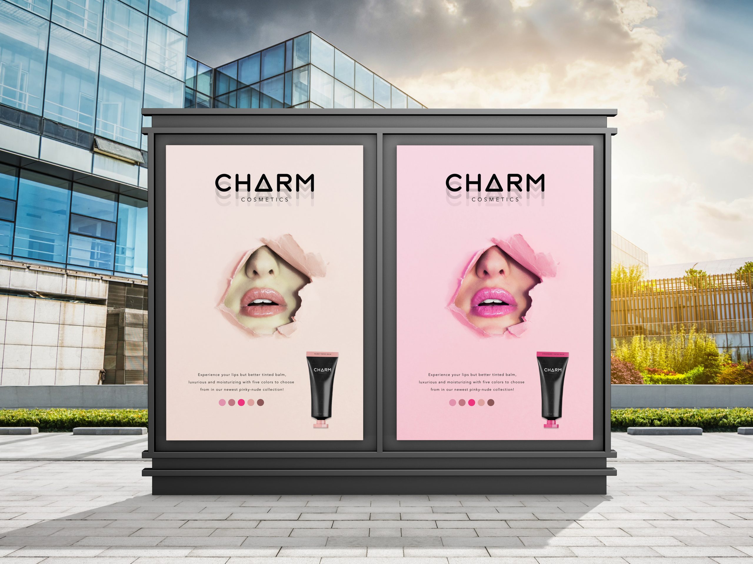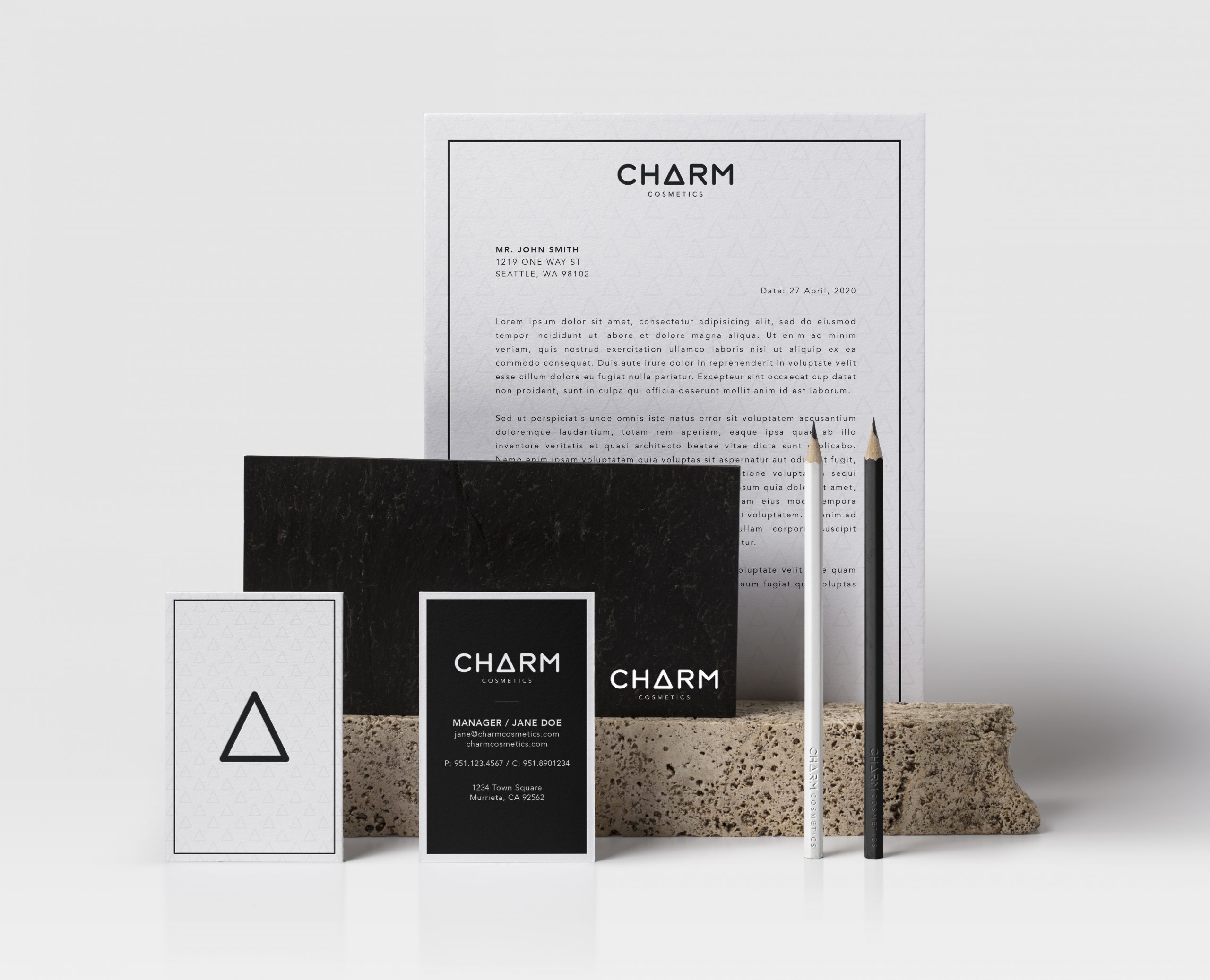 Charm Cosmetics shows a small line of cosmetic products with natural ingredients. They needed an updated look that could depict the freshness of their lineup. This brand currently has items that include lip balm and concealer. The color choices used were black and white, making other accent colors stand out. The sans-serif typefaces reflect a clean and sophisticated look. The logomark is a triangle that represents three parts of a woman’s life: inner beauty, outer beauty, and the beauty of the world she lives in. Some of the marketing materials included are: packaging design, posters, and a newsletter promo.