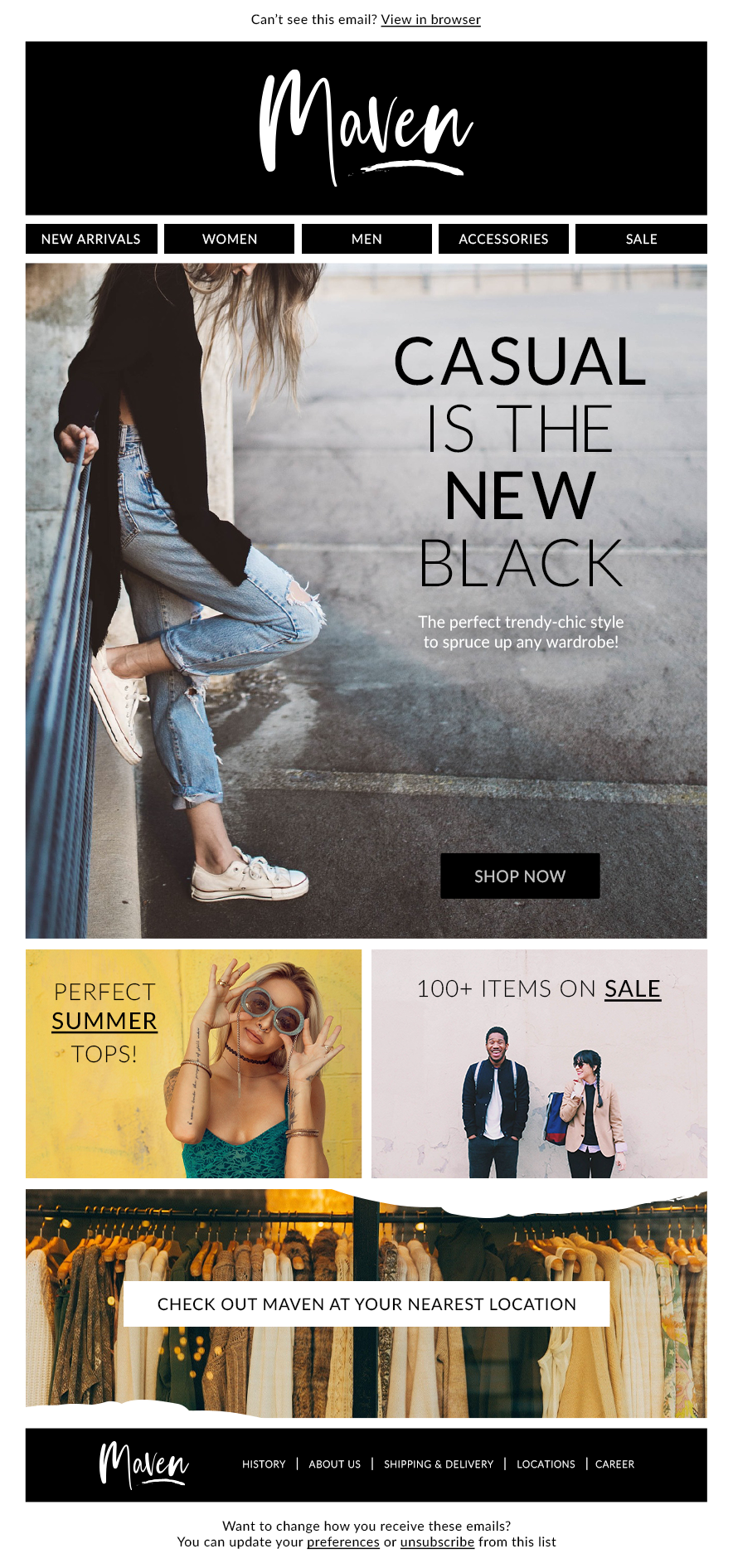 Maven Clothing is a storefront concept that specializes in simple yet trendy-chic clothing. The logo uses a hand-lettered, script typeface that represents fluidity and contemporary living. This store is focused on casual and trendy clothing for men and women. The unique design of their products are what make the brand stand out. Each piece is woven to perfection using organic clothing material that is environmentally friendly.